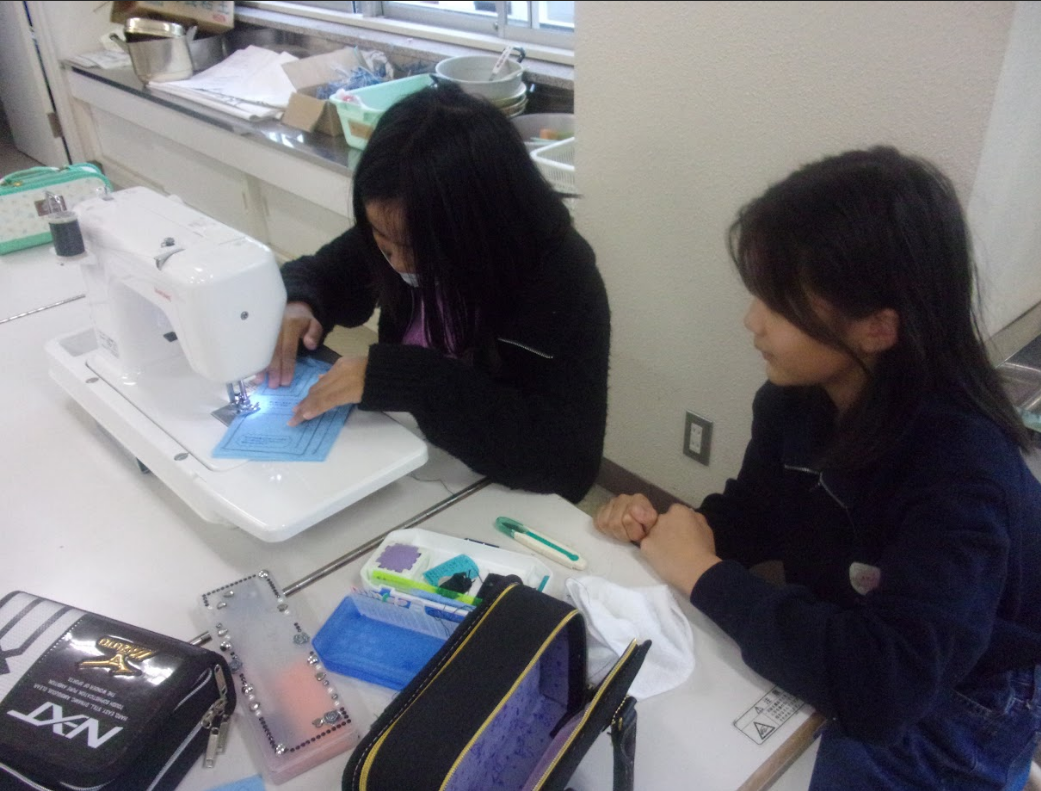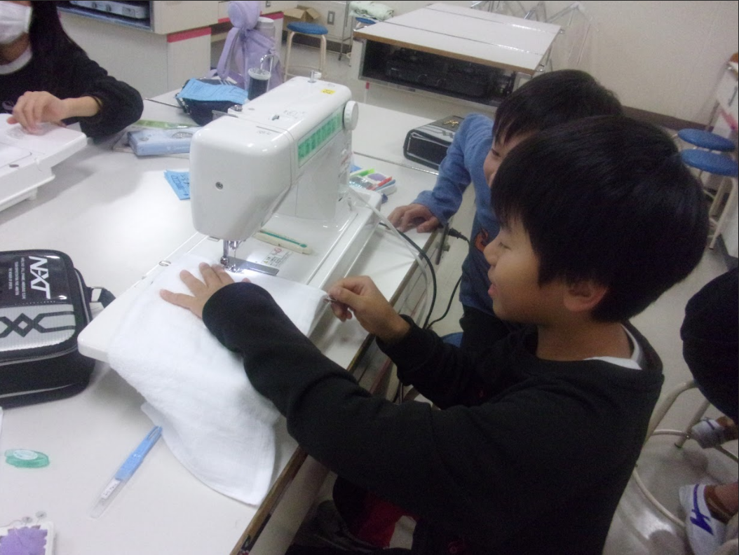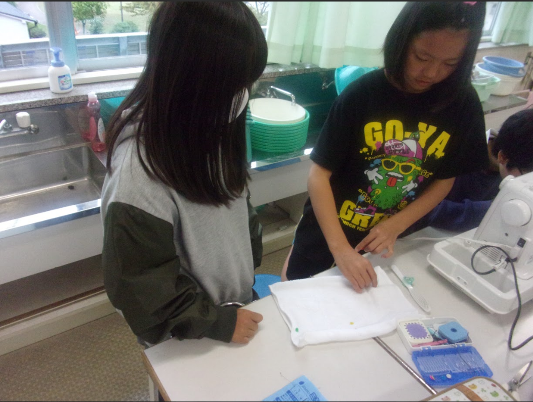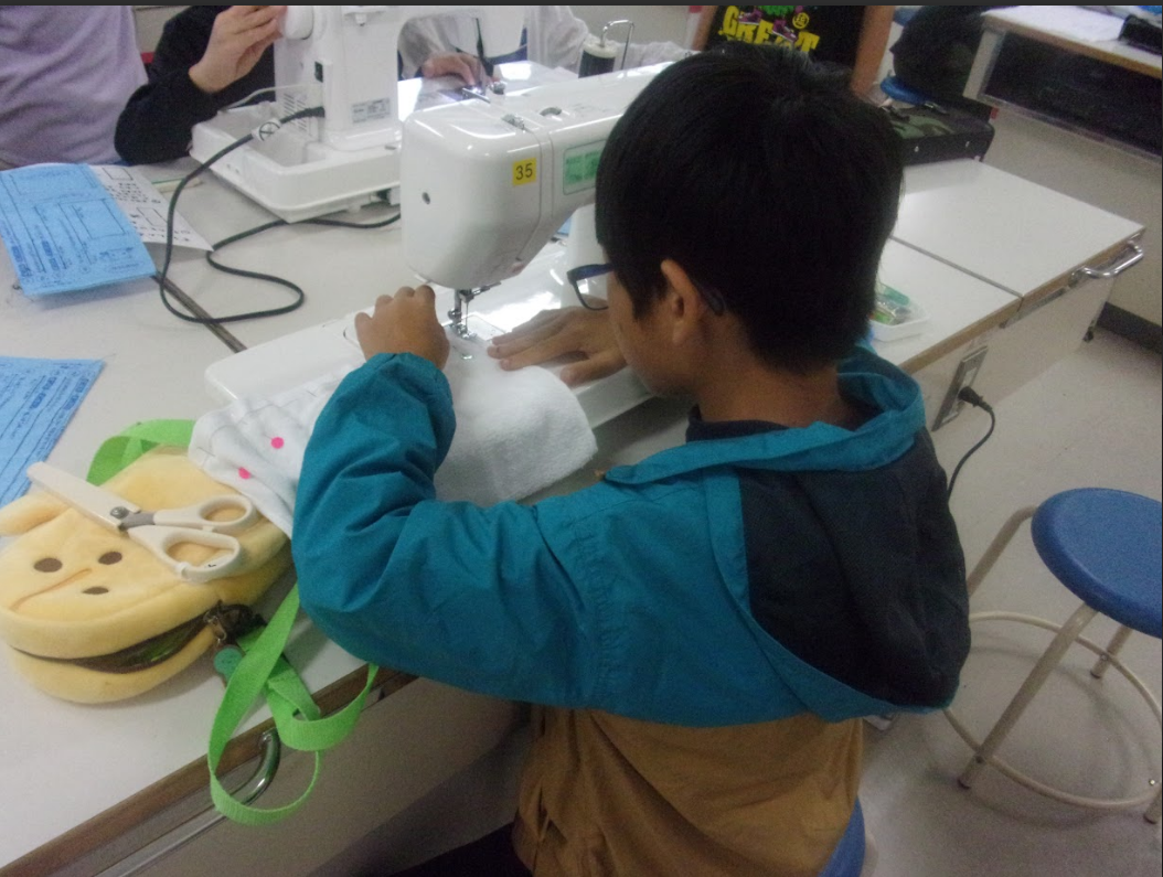 家庭科では、ミシンを使った学習に取り組んでいます。 ミシンへの糸の通し方から まっすぐ布を縫い合わせていくコツまで 丁寧に身に付けていきました。 友達同士でアドバイスをし合ったり よいところを見付け合ったりして 楽しんで学習に取り組むことができています。