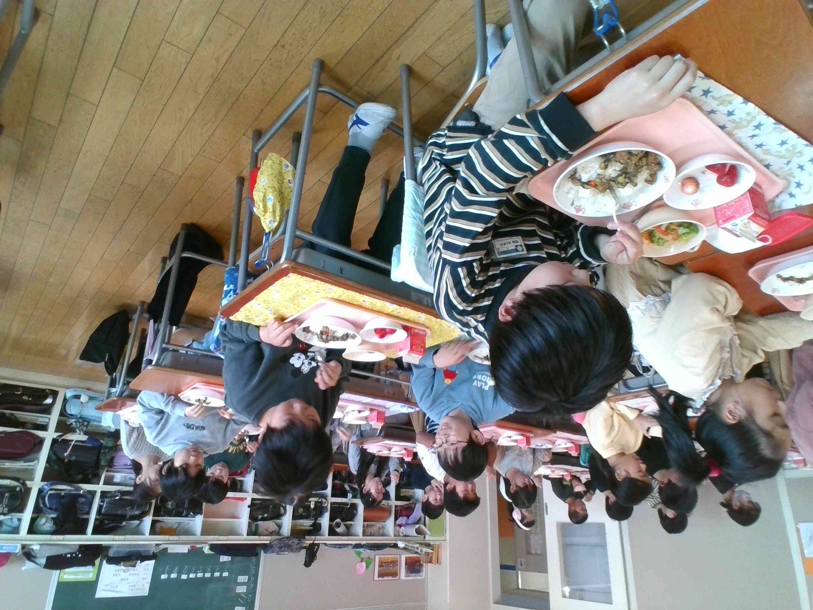 先の日記にもあるように おいしいメニューコンテストで ファミリー部門の優秀賞にに入選した「魚パオライス」が 栄養士の先生のご配慮で 給食に出されました。 栄養満点のメニューを 美味しそうに食べる4年生の子ども達。 小学校での給食を食べるのも あとわずかの6年生。 今日もおいしく 給食をいただきました。